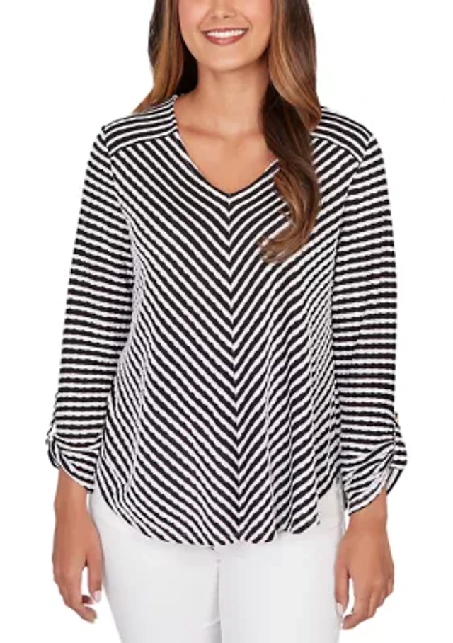 Plus Mitered Scallop Stripe Knit Tunic Top