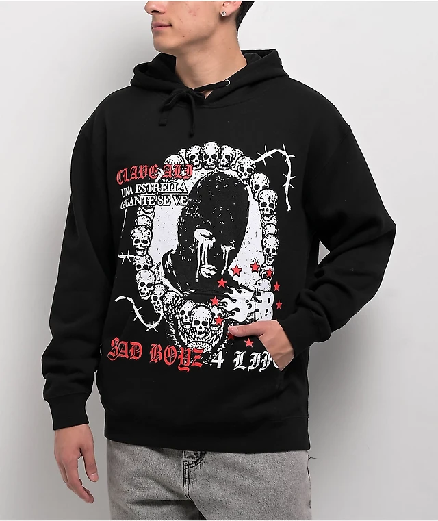 $AD BOYZ by Junior H Rhinestone Flames Black Hoodie