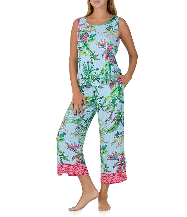 Sanctuary Sleeveless Scoop Neck Animal Print Jersey Knit Cropped Pajama Set