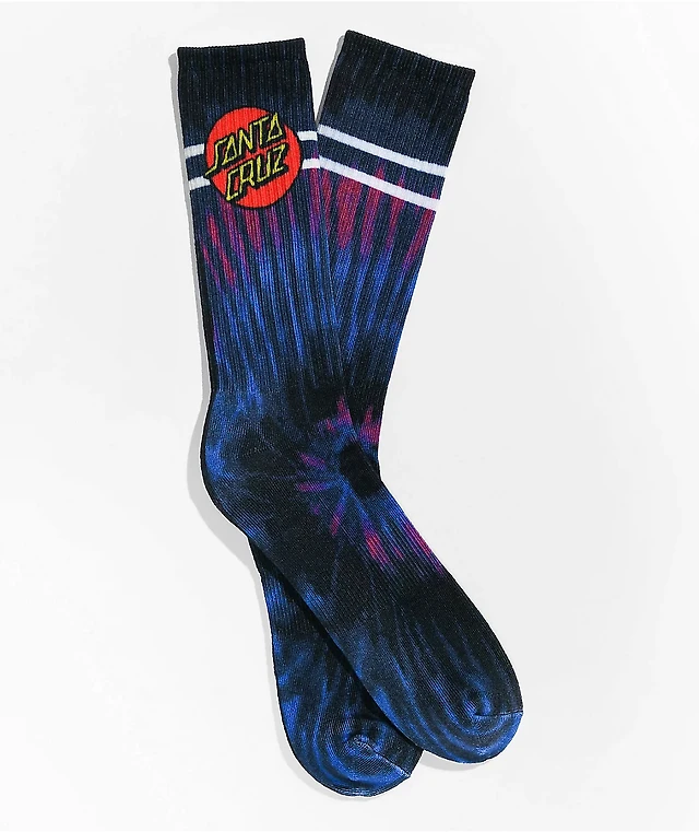 Santa Cruz Classic Dot Navy & Pink Stripe Dye Crew Socks