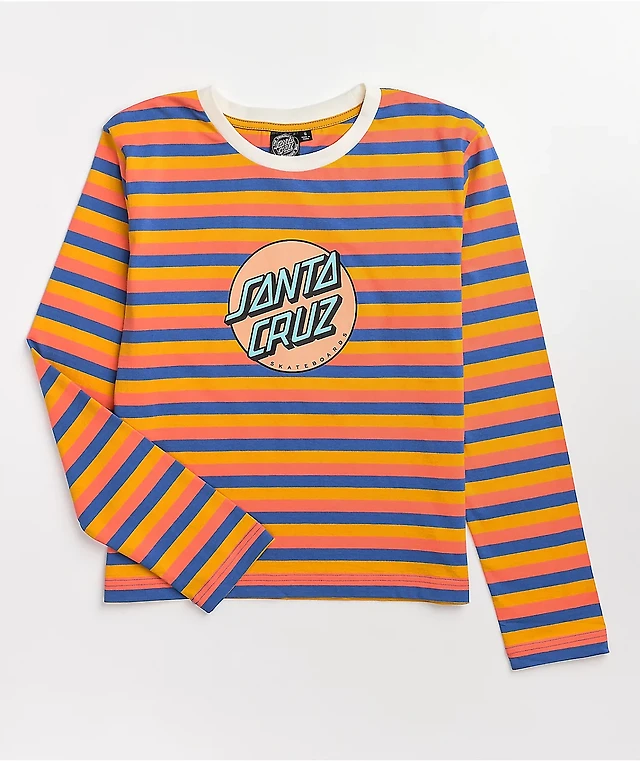 Santa Cruz Psychedelic Dot Brown & Blue Stripe Long Sleeve T-Shirt