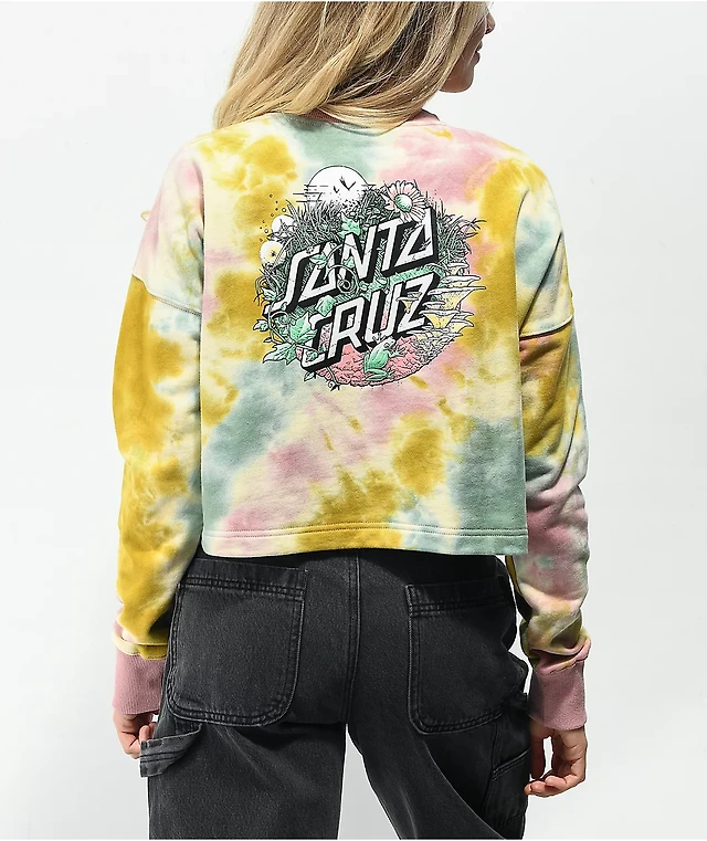 Santa Cruz Nature Dot Tie Dye Crop Crewneck Sweatshirt