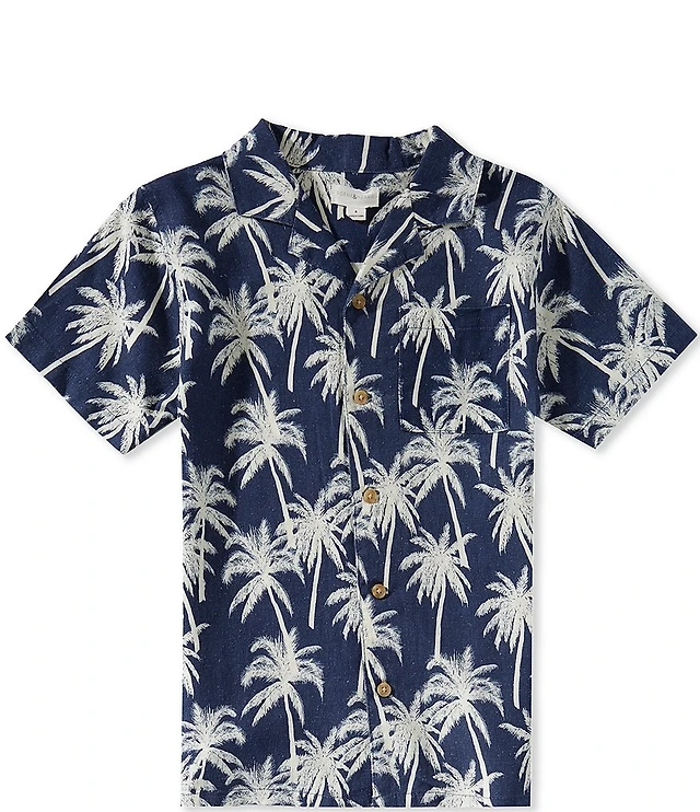 Scene&Heard Little Boys Linen Blend Leaf Print Camp Camp Collar Button Down Short Sleeve Shirt