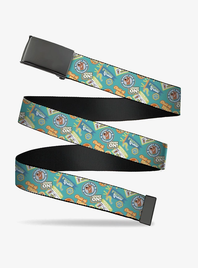 Scooby-Doo! Stacked Close Up Black Seatbelt Buckle Dog Collar