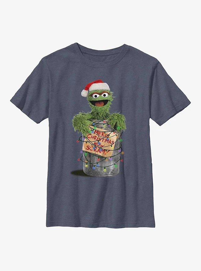 Sesame Street Oscar the Grouch Merry Christmas Now Scram Youth T-Shirt