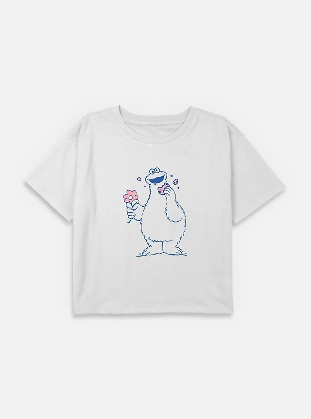 Sesame Street Cookie Monster Flower Youth Girls Boxy Crop T-Shirt
