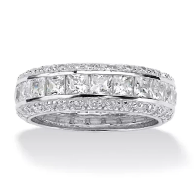 5.12 TCW Baguette CZ Eternity Band in Platinum-plated Sterling Silver