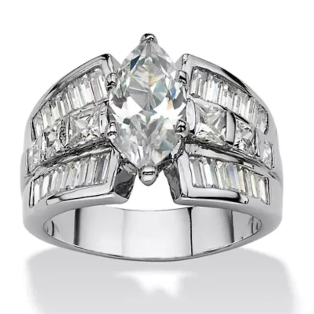 7.87 TCW Marquise-Cut Cubic Zirconia Platinum-Plated Engagement Anniversary Ring