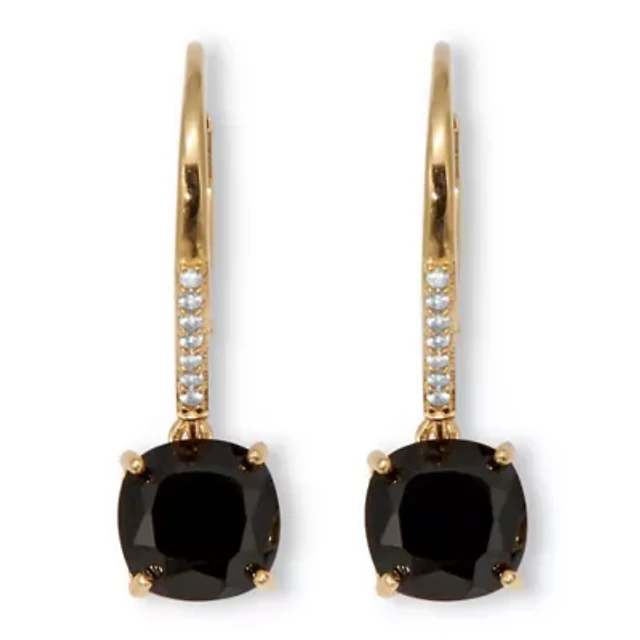 .11 TCW Cushion Cut Genuine Black Spinel and CZ Sterling Silver Hoop Earrings