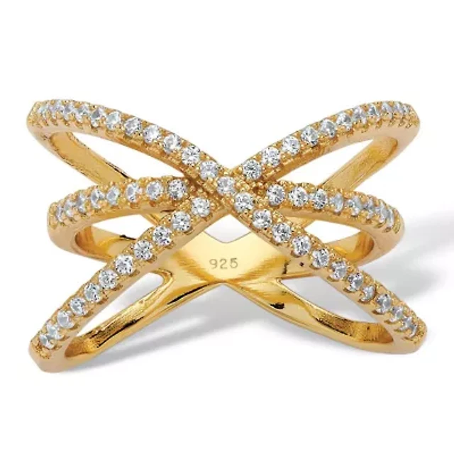 .57 TCW Cubic Zirconia 14k Yellow Gold-Plated Sterling Silver Crossover Ring