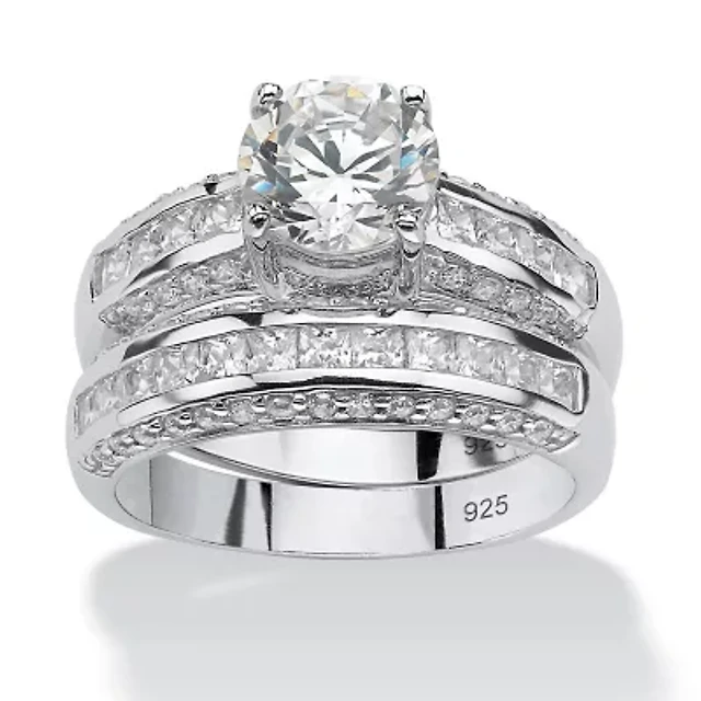 3.19 TCW CZ Bridal Ring 2 Piece Set in Platinum-plated Sterling Silver
