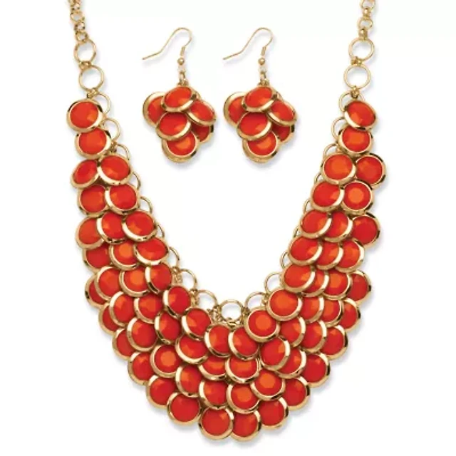 Yellow Bib Necklace and Cluster Earrings Set in Yellow Goldtone