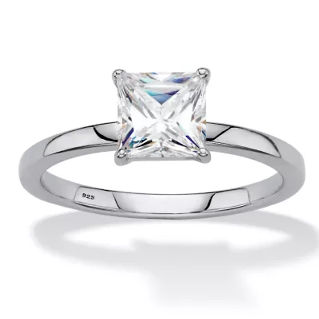 Lab Created 1.16 Cttw. Princess-Cut Platinum-Plated Silver White Sapphire Engagement Ring