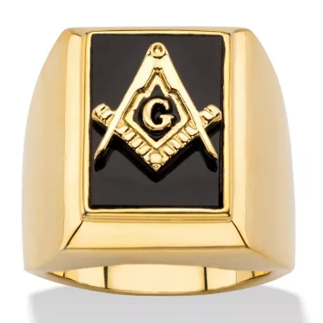 Men's Genuine Black Onyx Gold-Plated Masonic Cabochon Ring