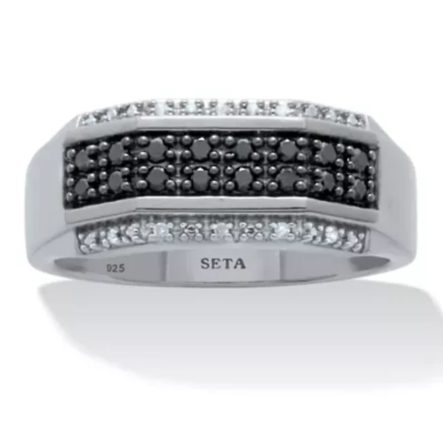 Men's 2 TCW Semi-Bezel-Set Cubic Zirconia Platinum-plated Sterling Silver Ring
