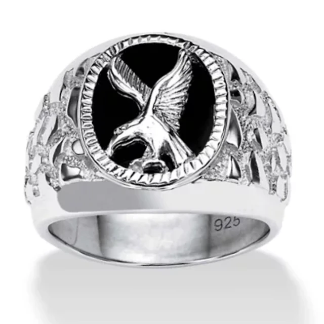 Men's Oval-Shaped Genuine Onyx 14k Gold-plated Sterling Silver Eagle Ring