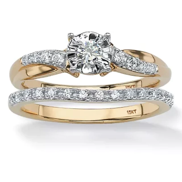 Diamond Accent 10k Yellow Gold 1" Ribbon Drop Earrings