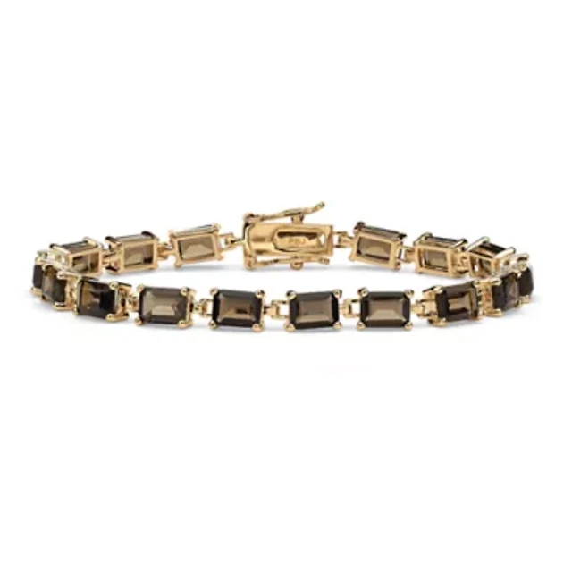 16 TCW Genuine Smoky Quartz Yellow Gold-Plated Tennis Bracelet 7.25"