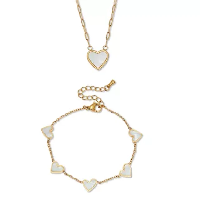Yellow Gold Ion-Plated Stainless Steel Heart Bracelet And Necklace 16 Inch