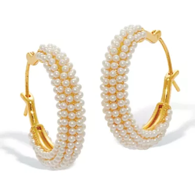 .10 TCW Diamond 18K Gold-Plated Sterling Silver Filigree Hoops (7/10 inch)