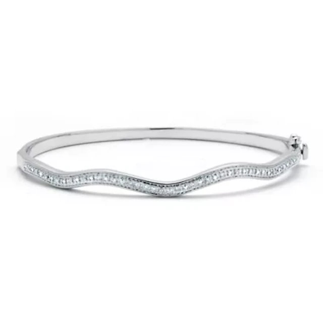 .11 TCW Diamond Sterling Silver Curvy Bangle Bracelet 7.5 Inches