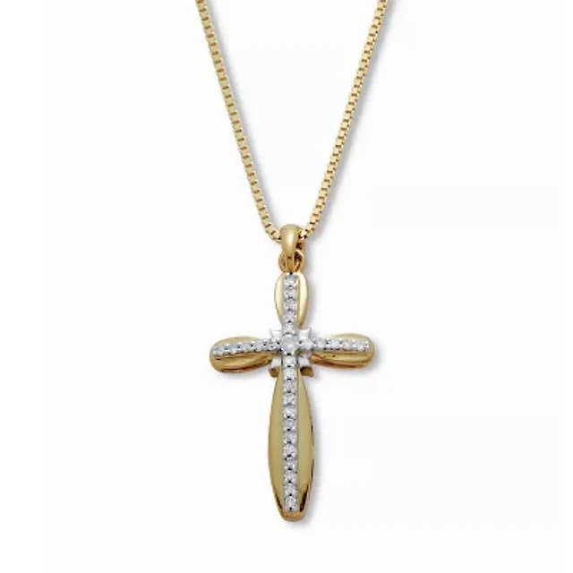 .10 TCW Diamond Gold-Plated Sterling Silver Cross Pendant and Chain 18 Inches