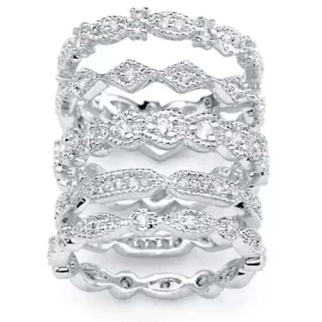 5 Piece 1.55 TCW Round Cubic Zirconia Stack Eternity Bands Set Silvertone