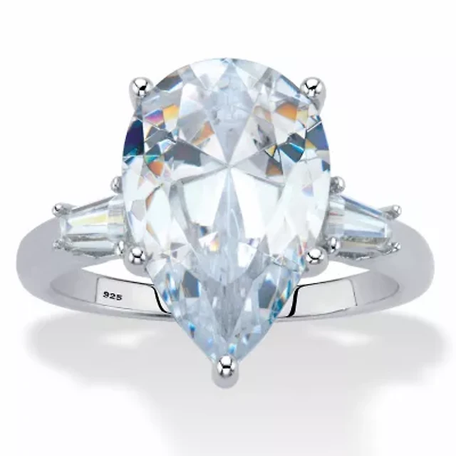 6.40 Cttw. Round and Baguette Sterling Silver Cubic Zirconia Engagement Ring