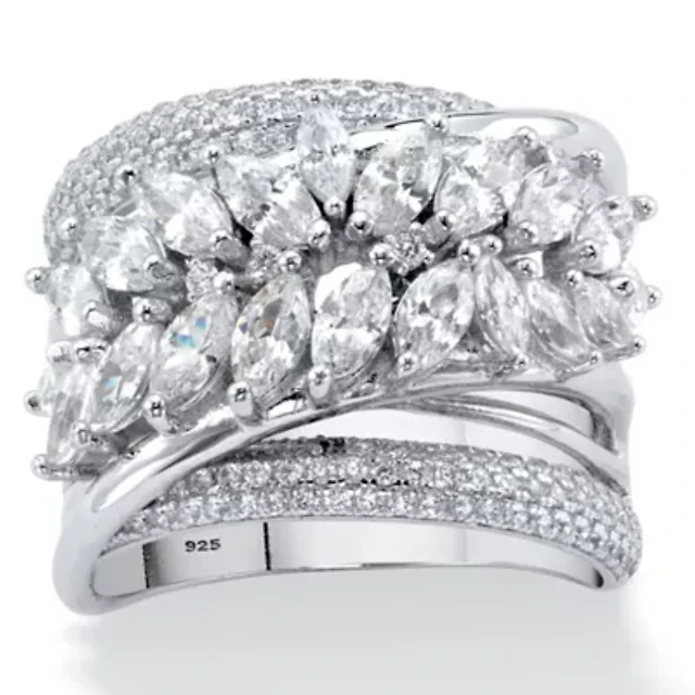 4.32 TCW Multi-Cut Cubic Zirconia Platinum-Plated Bypass Cocktail Ring