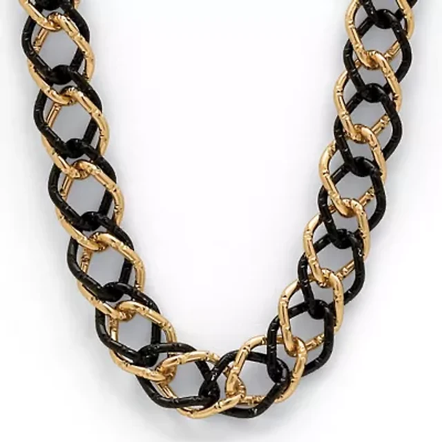 Yellow Goldtone Black-Ruthenium-Plated Curb-Link Necklace 19"