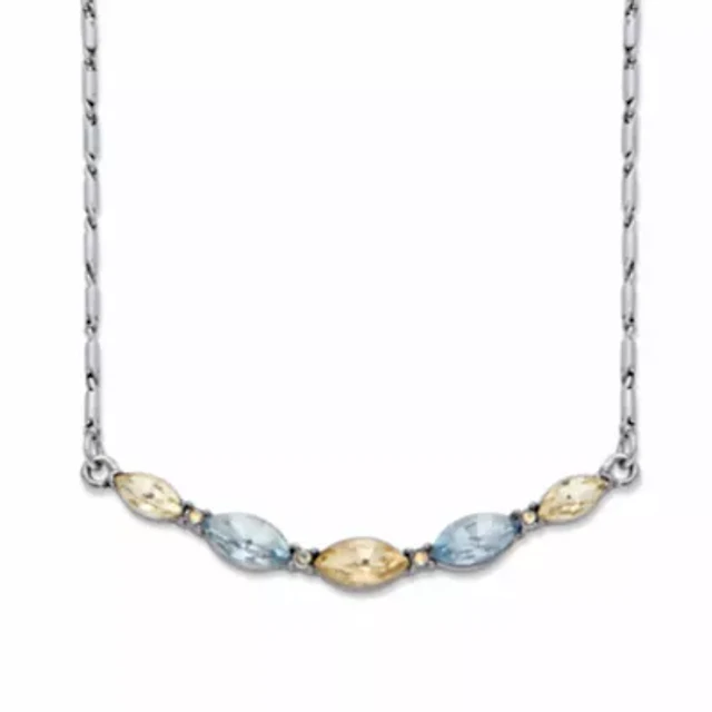Marquise-Cut Blue Crystal and Simulated Turquoise Goldtone Necklace 17"-19"