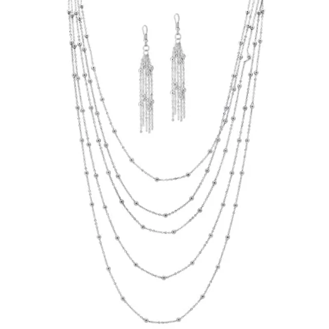 2 Piece Multi-Chain Beaded Station Necklace and Drop Earrings Set Goldtone