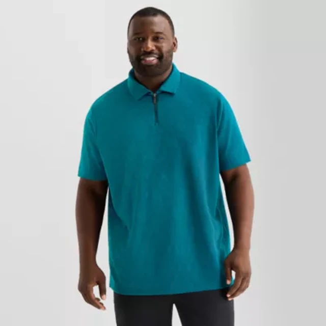 Shaquille O'Neal XLG™ Quarter Zip Big and Tall Mens Classic Fit Short Sleeve Polo Shirt