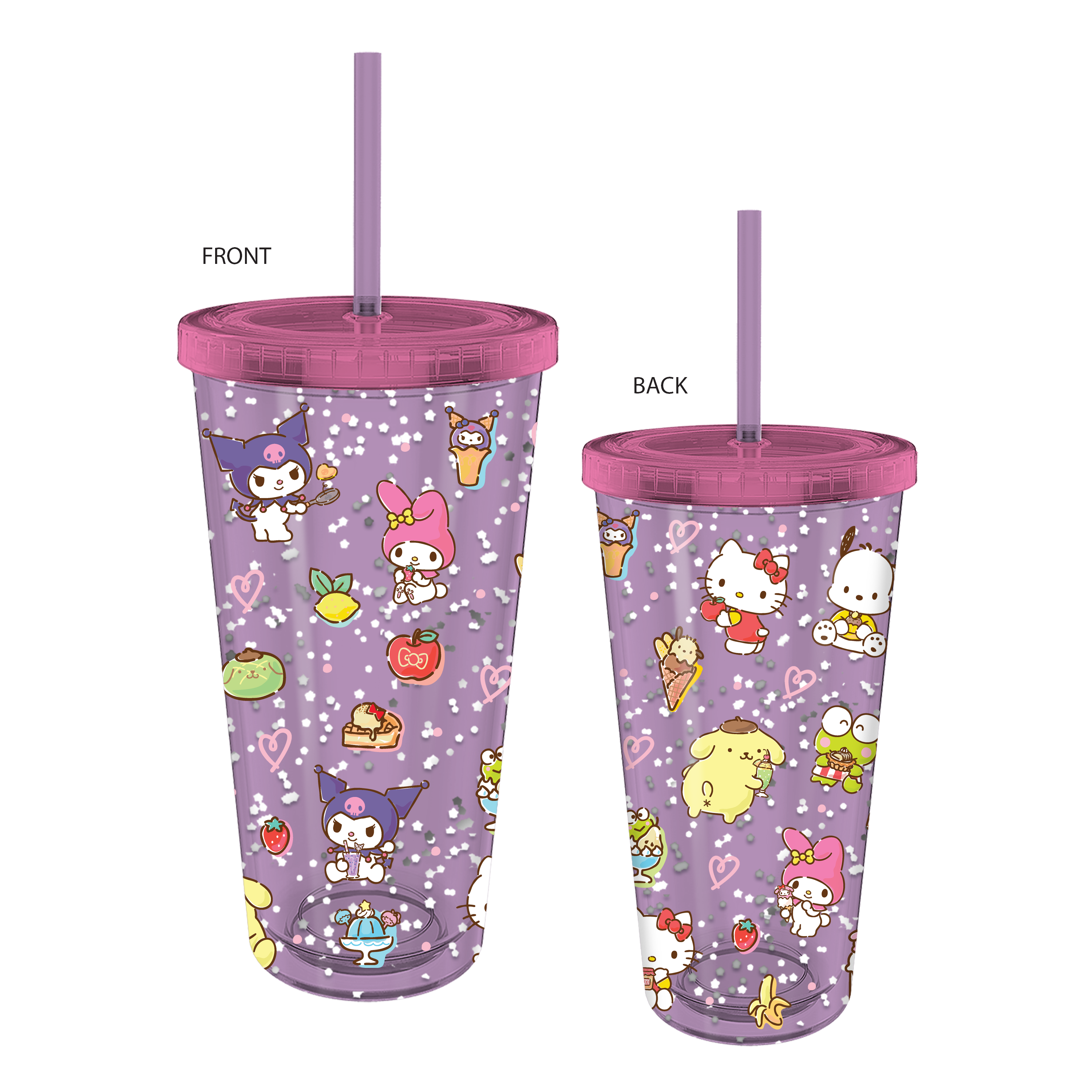 Sanrio Cinnamoroll Stripe Pattern 24oz Plastic Cold Cup with Lid And Topper Straw