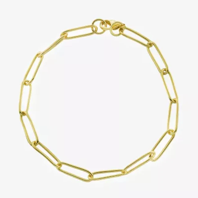 Silver Reflections Womens 14K Gold Over Brass 7.25 Inch Solid Paperclip Chain Bracelet