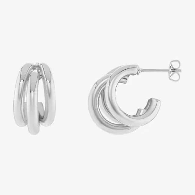 Silver Reflections Three Row Womens 15mm Hoop Earrings