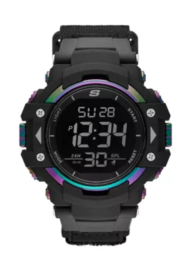 Keats 55 Millimeter Sport Digital Chronograph Watch with Fast Wrap Strap and Plastic Case, Black and Iridescent