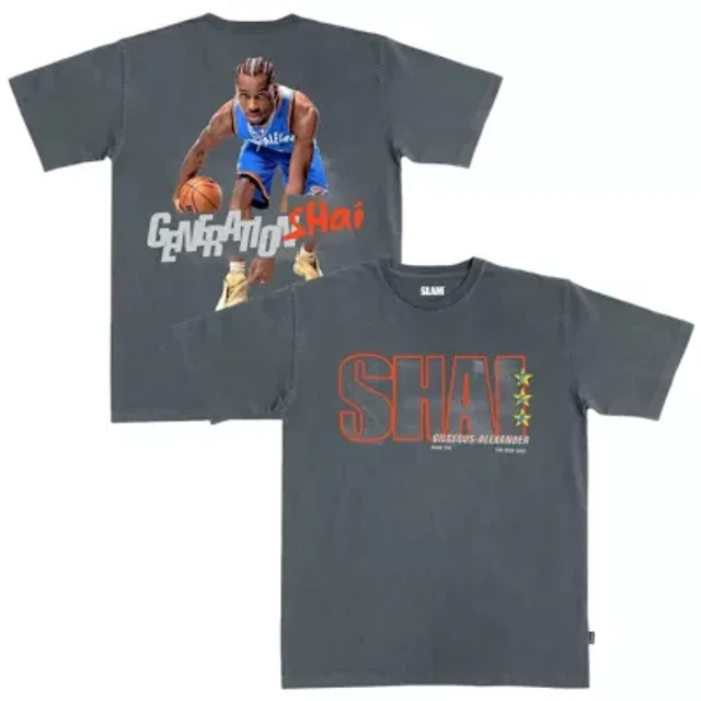 Unisex SLAM Shai Gilgeous-Alexander Charcoal Oklahoma City Thunder February/March 2025 Cover Graphic Remix T-Shirt