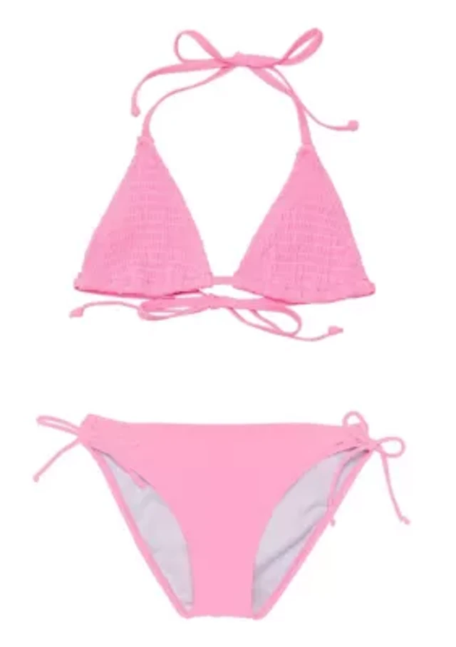 Pink Shirred Triangle Bikini