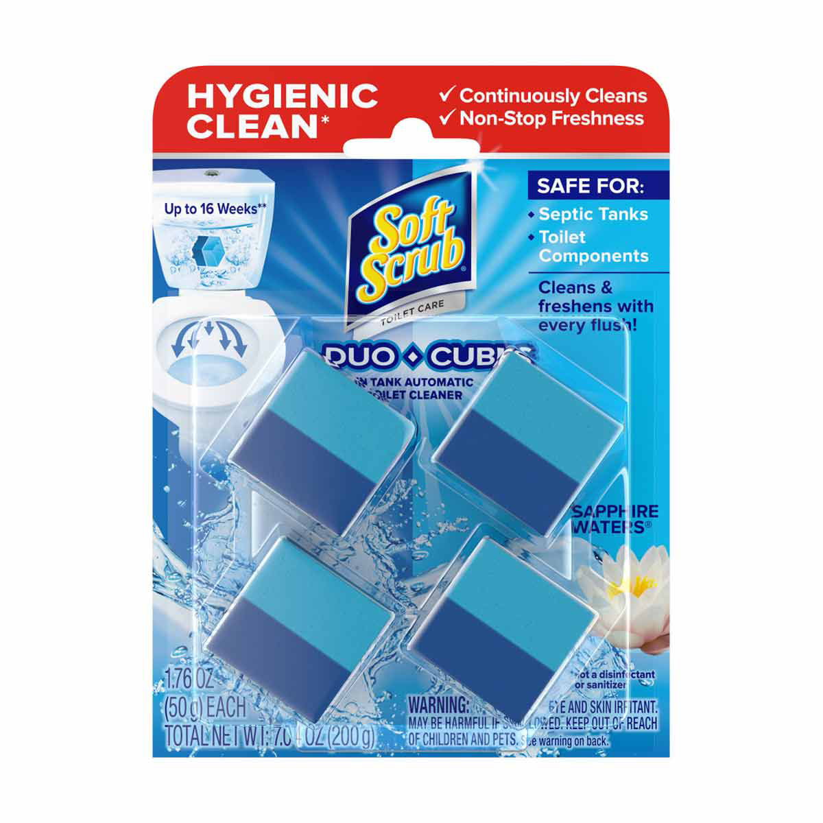 Soft Scrub In-Tank Toilet Cleaner Duo-Cubes, Sapphire Waters, 4 Count