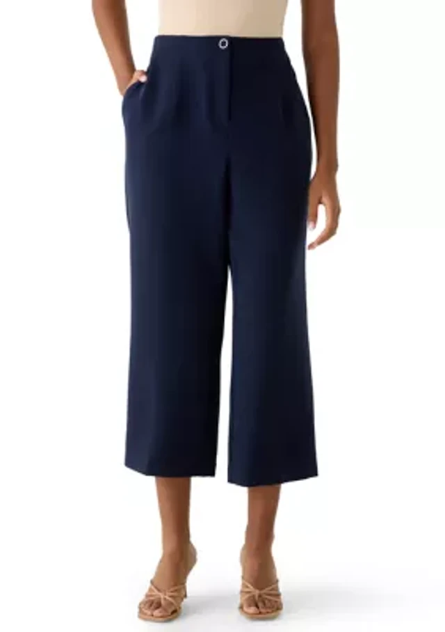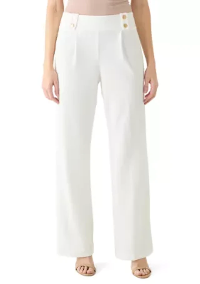 Women's Pull On Wide Leg Pants with Pleats and Rivits