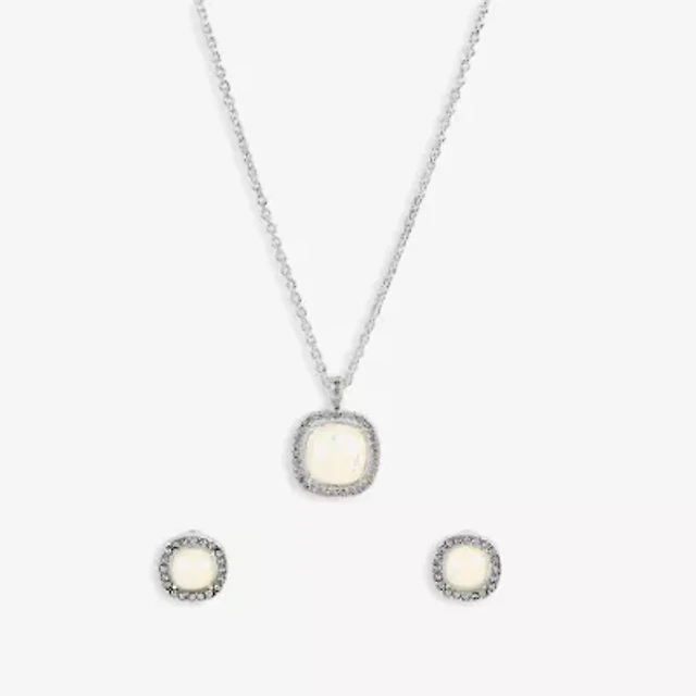 Sparkle Allure Light Up Box Womens Cubic Zirconia Simulated Pearl Pure Silver Over Brass Oval 2-pc. Jewelry Set