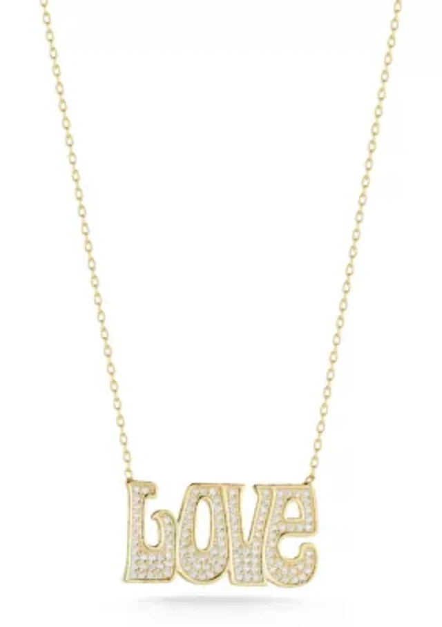 Sterling Silver CZ "Love" Safety Pin Pendant Necklace