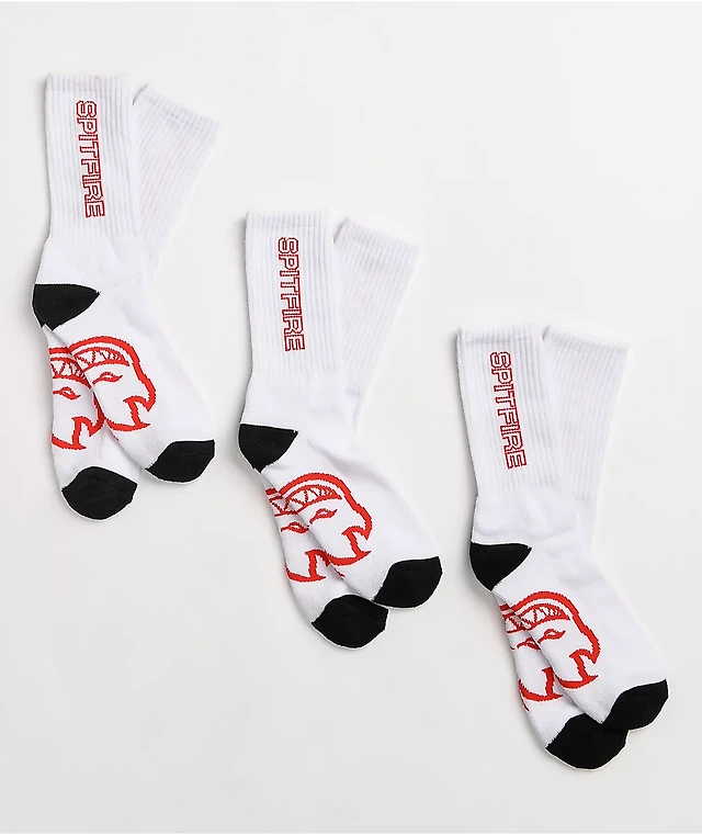 Spitfire Big Head Embroidered White & Red Crew Socks