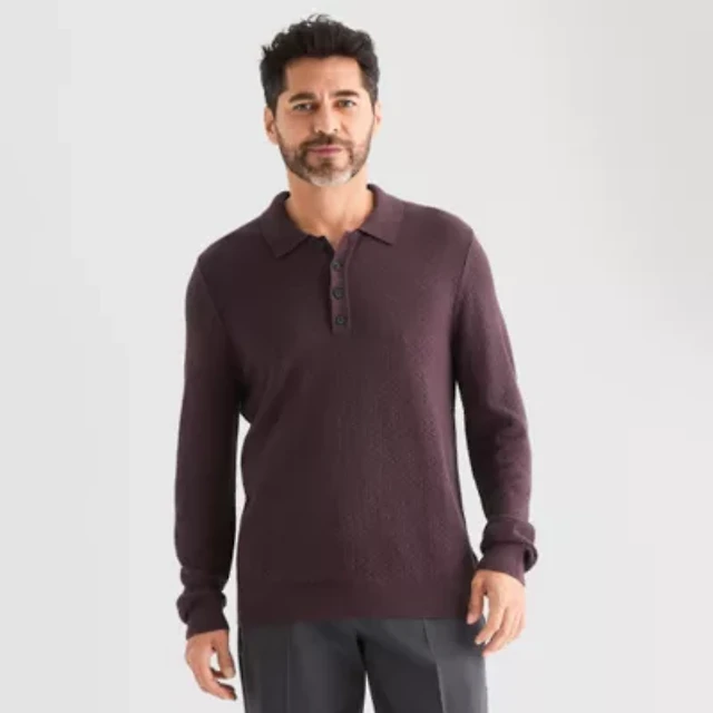Stafford Textured Mens Short Sleeve Button Polo Sweater