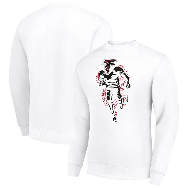 Men's Starter White Atlanta Falcons Logoface Team Graphic Tri-Blend Fleece Pullover Sweatshirt