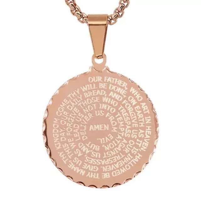 Men's black ip stainless steel "our father…" pendant with 24'' ball chain