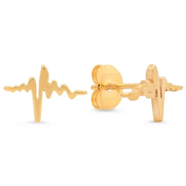 Ladies 18k gold plated stainless steel heartbeat stud earrings