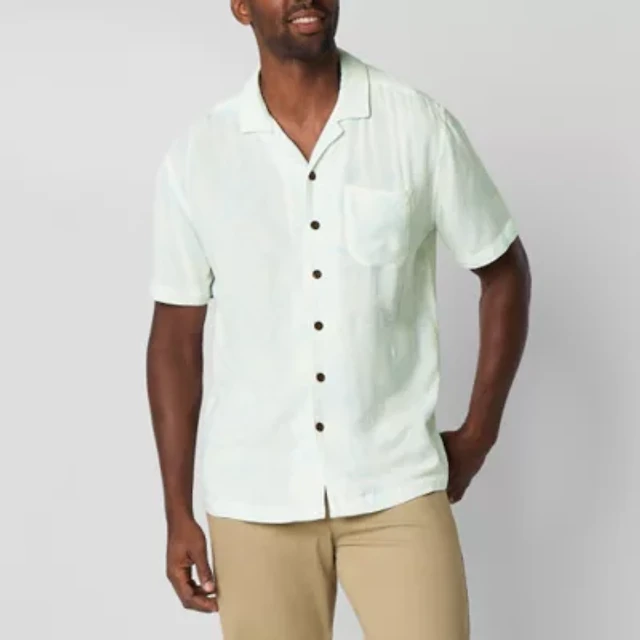 St. John's Bay Linen Blend Mens Long Sleeve Classic Fit Button-Down Shirt