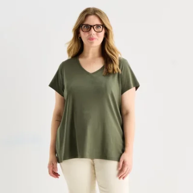 St. John's Bay Womens Tall Short Sleeve Regular Fit Button-Down Shirt
